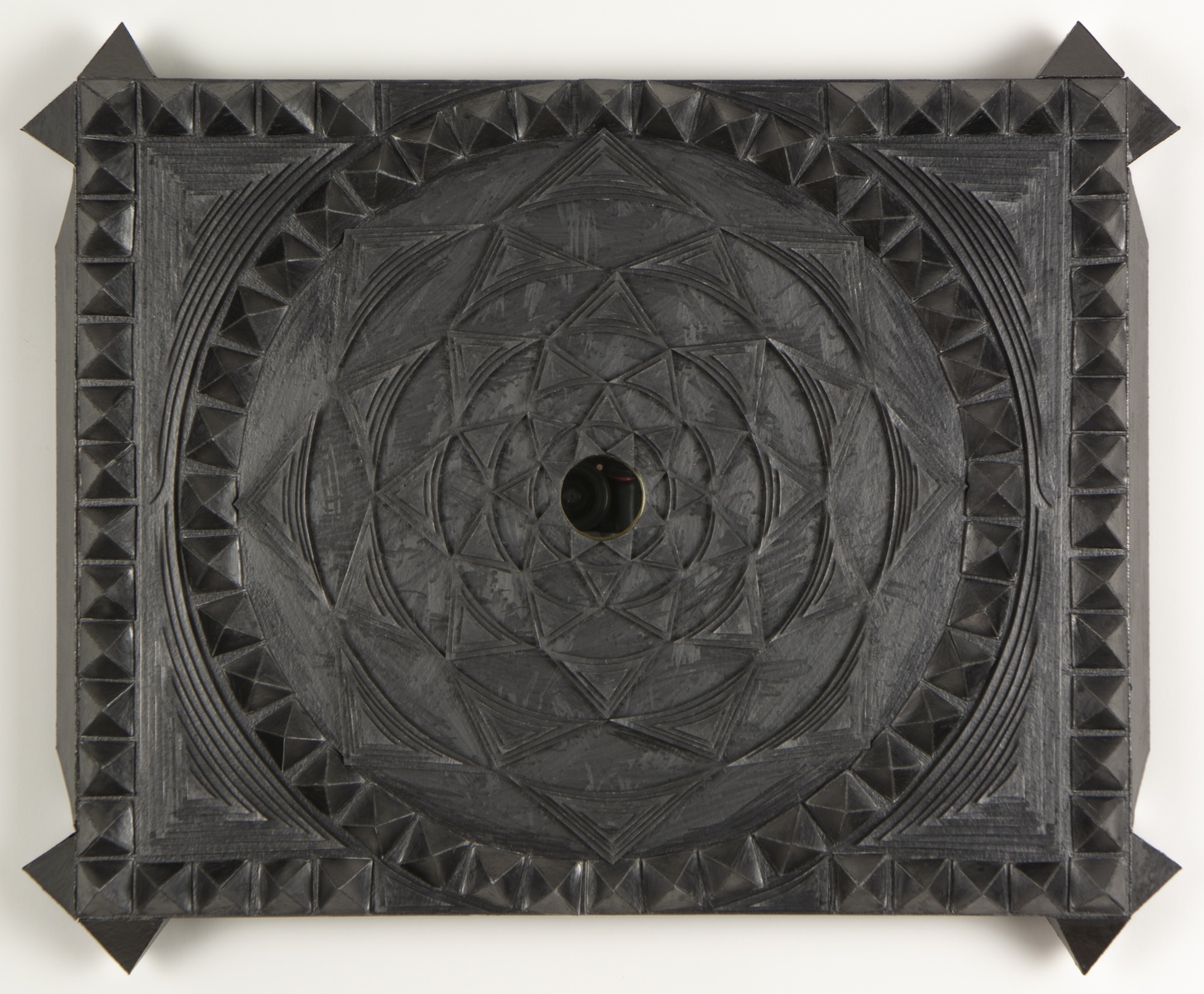 graphite, ink, and Plexiglas mirror on paper and wood construction